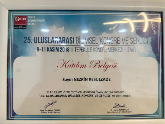 Dt.Nazrin Rasulzade, ortaokul ve liseyi Bakü’de okul birincisi olarak tamamlamış,2013 yılında Karadeniz Teknik Üniversitesi diş hekimliği fakültesinde eğitimine devam etmiştir. Mezun olduğu yıldan itibaren 2 yıl boyunca Bakü’de çeşitli kliniklerde hem çocuk diş hekimi hem de koordinatör diş hekimi olarak çalışmıştır. Son 2021den günümüze kadar Bakü de kendi muayenehanesinde hastalarına hizmet vermektedir.2022-2023 yıllarında aynı zamanda Nişantaşında özel bir klinikte hem koordinatörluk hem de genel diş hekimliği yapmıştır. Şuan ise ağırlık olarak Nişantaşında kendi muayenehanesinde ,ara tarihlerde ise aynı zamanda Baküde ki muayenehanesinde hastalarına hizmet vermektedir .En çok yoğunlaştığı alanlar,çocuk diş hekimliği,genel anestezi altında çocuk diş tedavileri ve estetik işlemlerdir